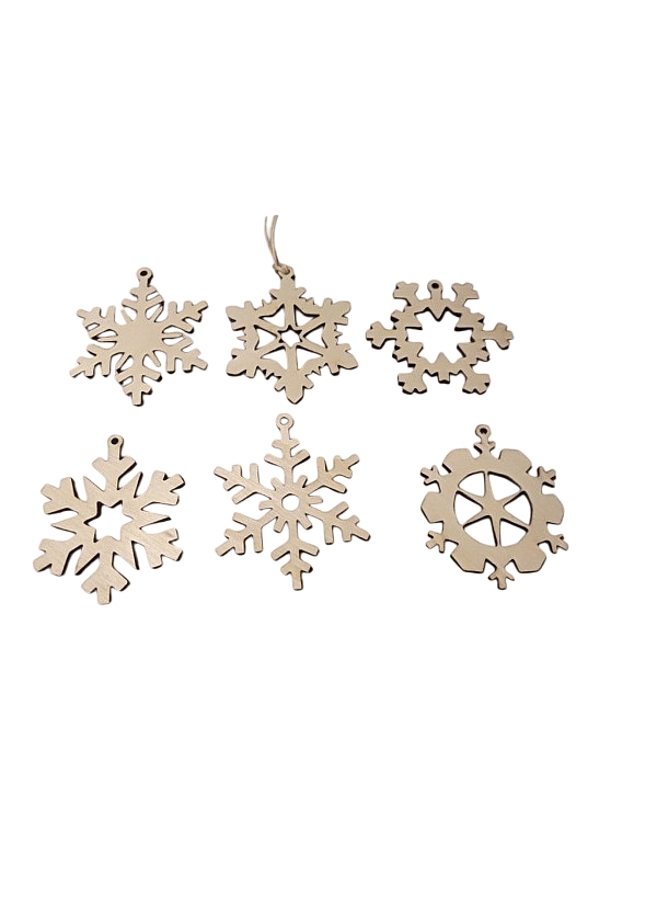 Komplet 6 lesenih okraskov za novoletno jelko,