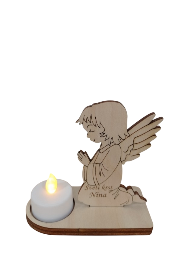 Svečnik z angelčkom z napisom za krst, prvo obhajilo, birmo...